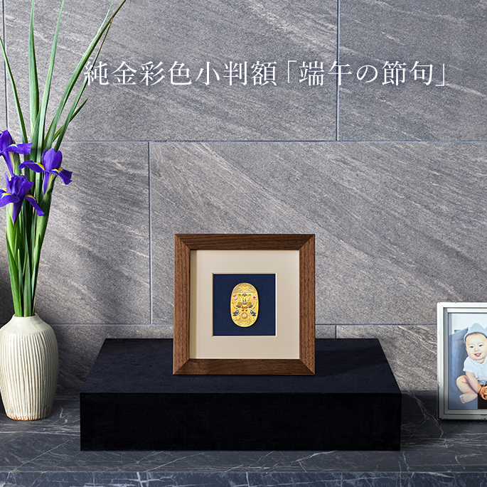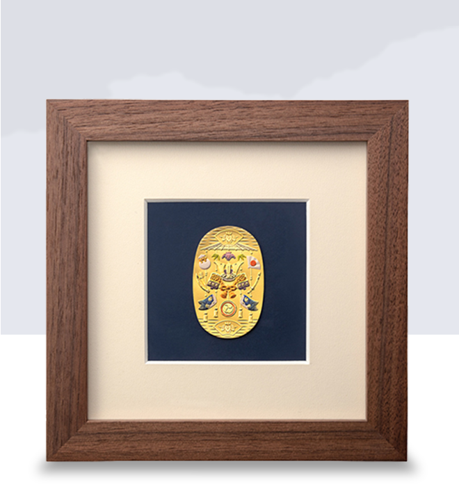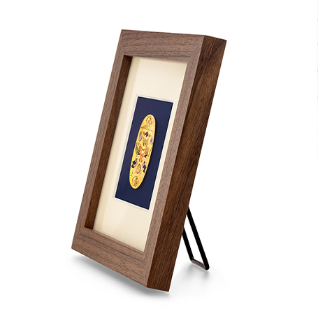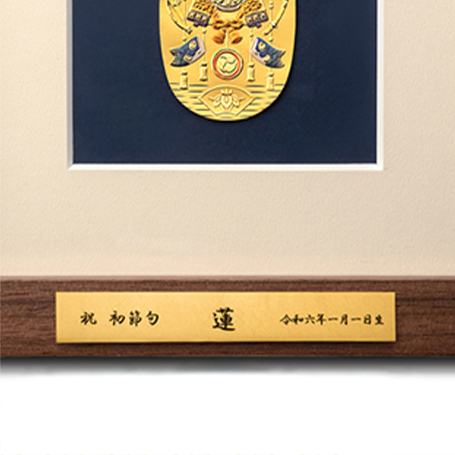 ご希望に応じて、金箔プレートを有料オプションとしてお付けいただけます。額の表面・裏面いずれにも取り付けが可能です。